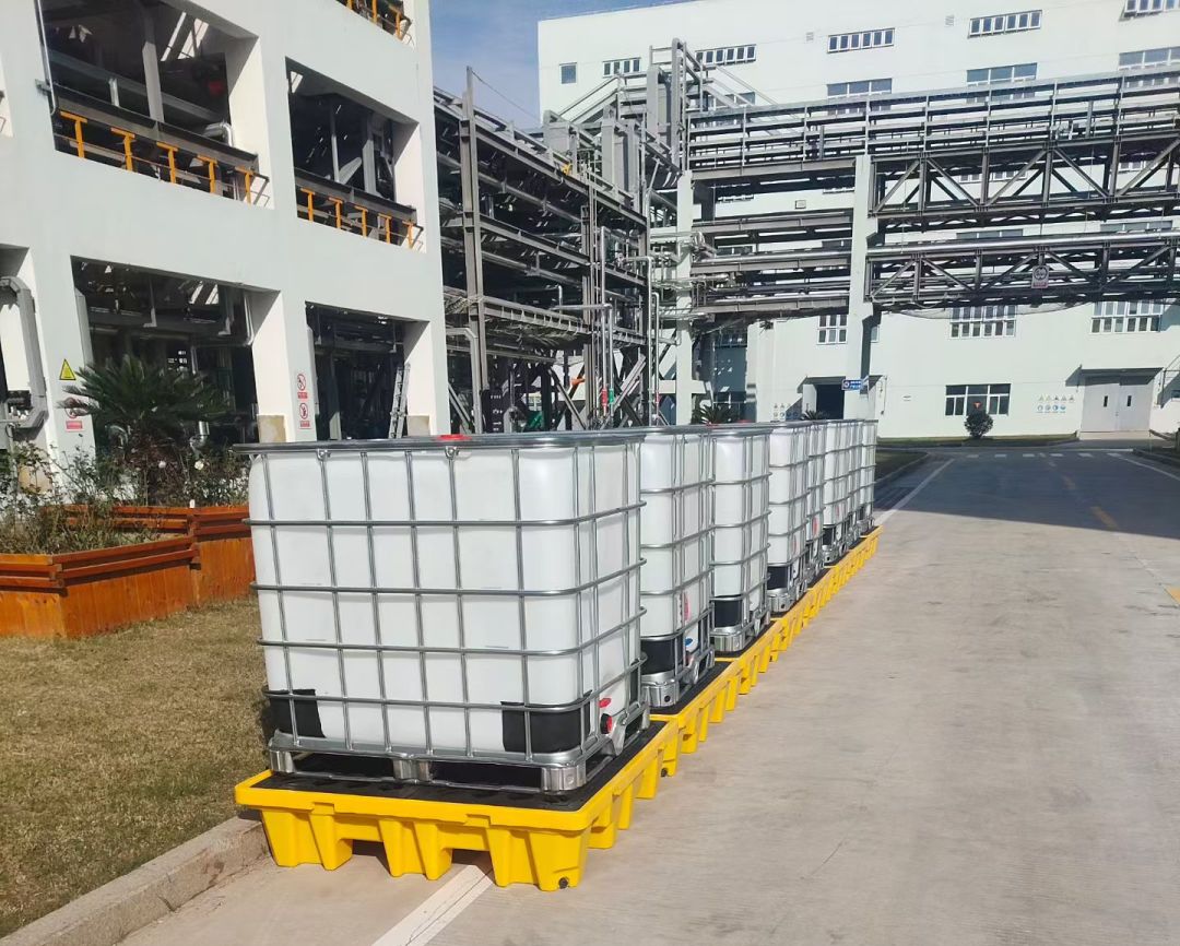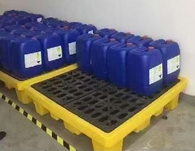 塑料托盘轻便易清洁,性价比突出,尤其适合中小型化学品容器的日常存储。